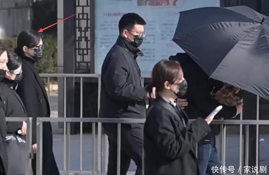 唐嫣的胳膊处戴了孝,她还戴了眼镜,估计是状态不好,毕竟公公也是她的家人。