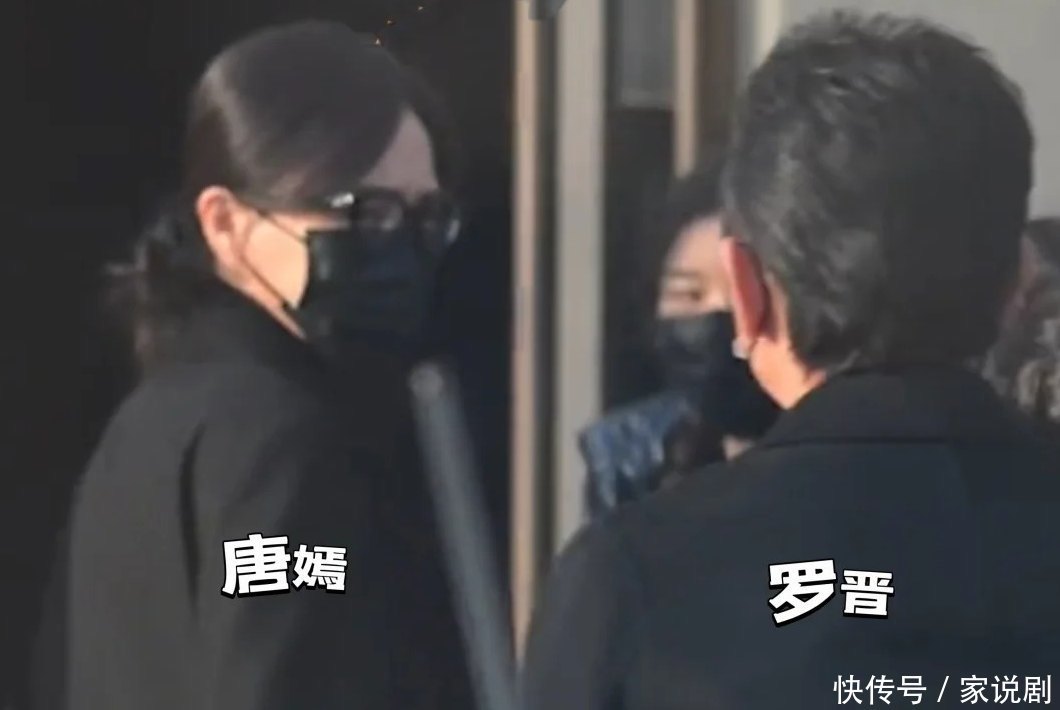 现场的亲友都是一身黑,包括唐嫣罗晋在内的很多人都戴了黑色口罩。